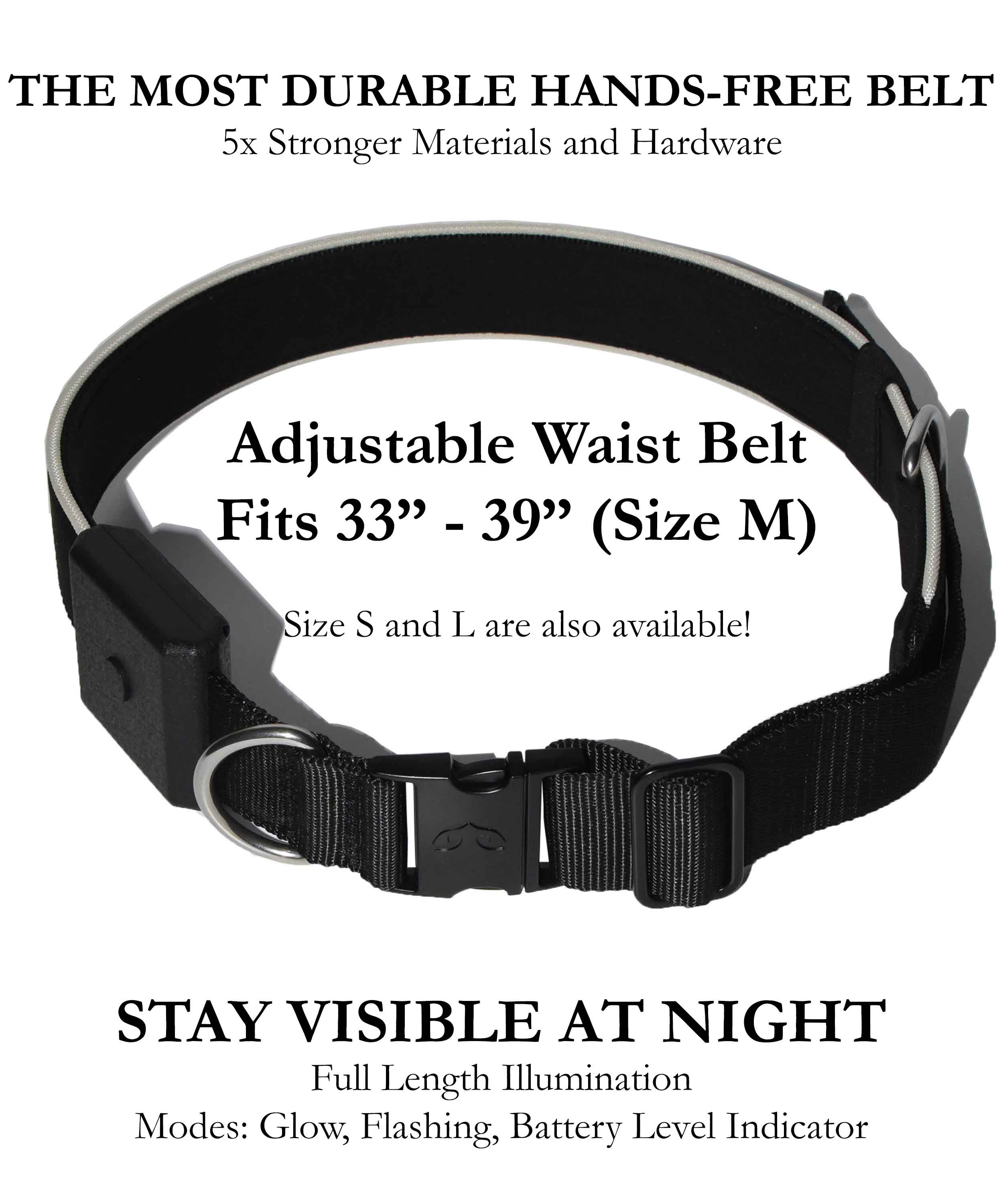 *Please note: The light cable does not run the entire length of the harness, please keep this in mind when making your purchase. Thus, to maximize the light production, find a balance between the belt length, the light cable length and your waist dimensions.